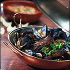 Ingrediënten voor tien personen:2,5 dl olijfolie 500 g sjalotjes 2,5 komkommer 750 g gele paprika 750 g winterpeen 1 kg pommodori 6 tenen knoflook 5 dl witte wijn 7,5 kg mosselen 2 kg spareribs 1 bos peterselie 50 g cajunkruiden 2 g zwarte peper Bereidingswijze:Verhit de olijfolie in de pan en bak hierin de gesneden