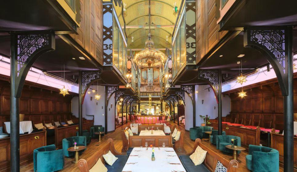 Het in een voormalige Lutherse kerk gelegen hotel-restaurant Bizar Bazar in Arnhem staat te koop voor 3,3 miljoen euro. Horecamakelaardij Knook&Verbaas biedt het restaurant en hotel met 14 kamers aan.