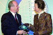 Chief executive Thomas Olivier van Six Continents krijgt uit handen van de Britse prinses Anne een stapeltje awards uitgereikt. De prijzen zijn ...