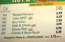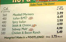 Subway vermeldt als enige grote keten de hoeveelheid calorieën op de menuborden die in de restaurants hangen. Daarmee is het bedrijf de enige die ...