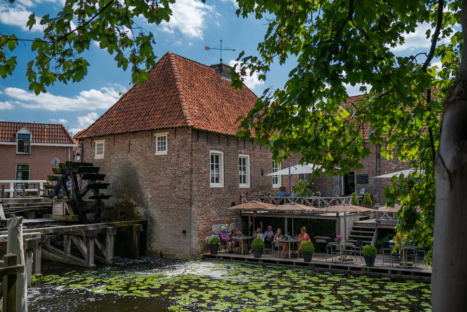 Net ten zuiden van de brug over de Vecht vinden we dit fraaie terras in het noorden van Overijssel.