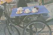 Café De Salon in Leeuwarden heeft een dienbladfiets ontwikkeld om het serveren van eten en drinken gemakkelijker te maken. 'Hij is nog niet helemaal ...